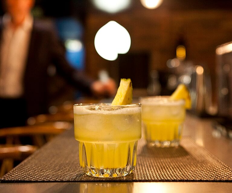 Serve over ice in punch glasses. Garnish with a pineapple slice, dehydrated or fresh.