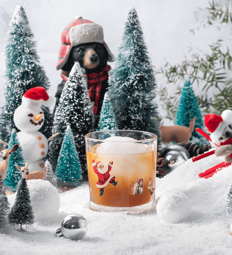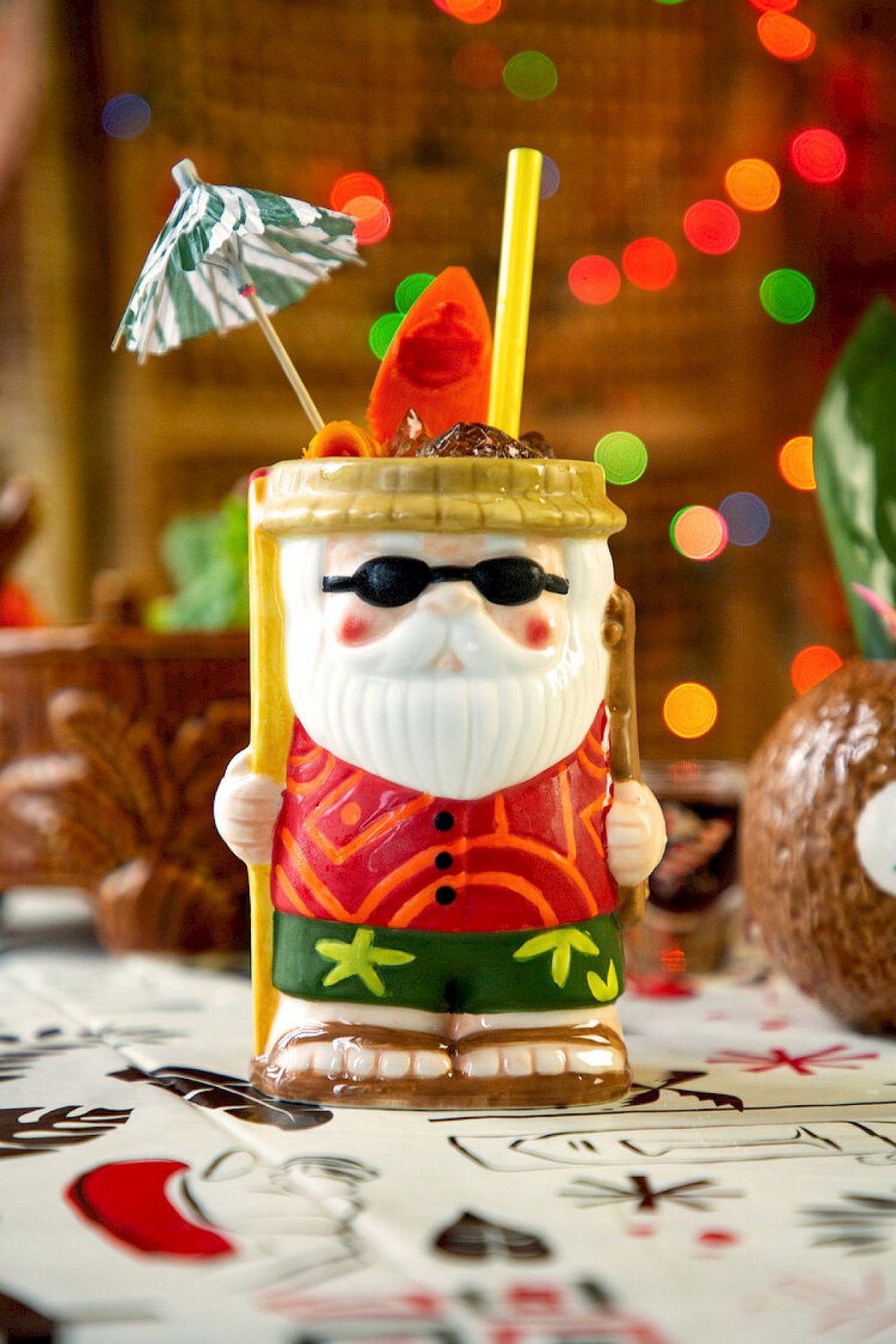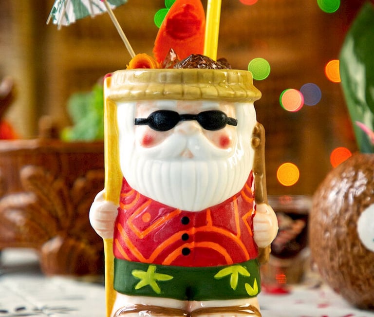 Whip shake with pebble ice until mostly gone. Pour into a Santa mug and top with pebble ice. Garnish with cocktail umbrella.