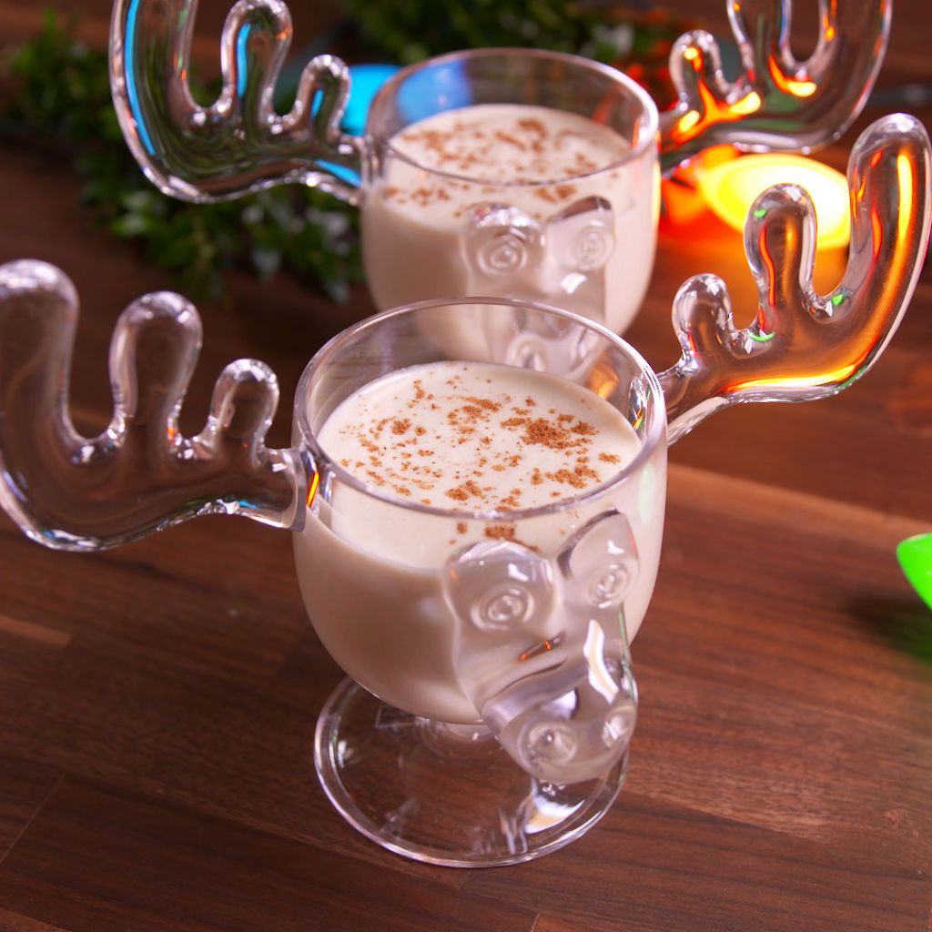 You can prebatch all ingredients ahead of time and chill. Garnish with freshly grated nutmeg.