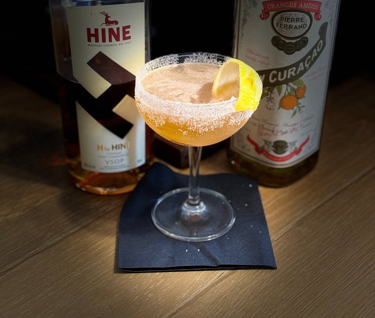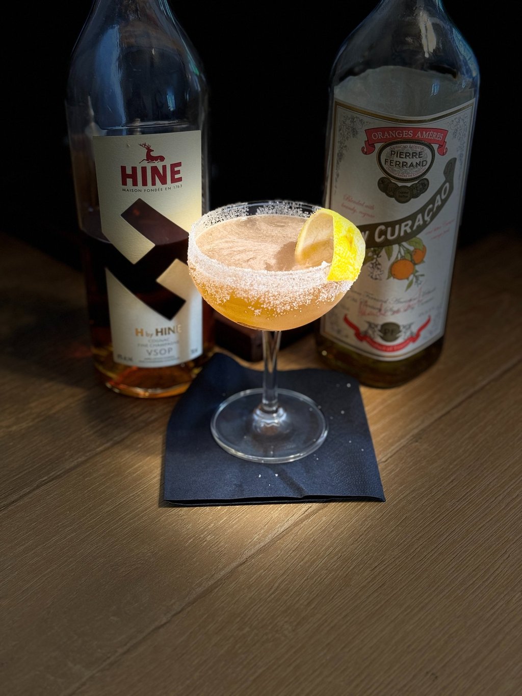 Shake 10-15 seconds. Strain into a sugar-rimmed coupe. Garnish with an expressed lemon peel.