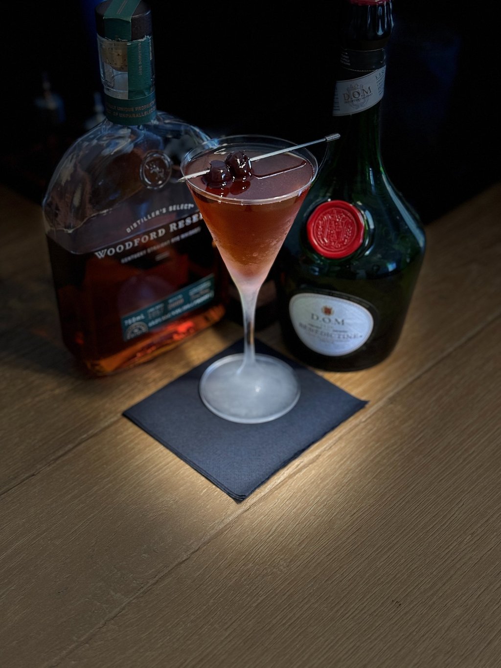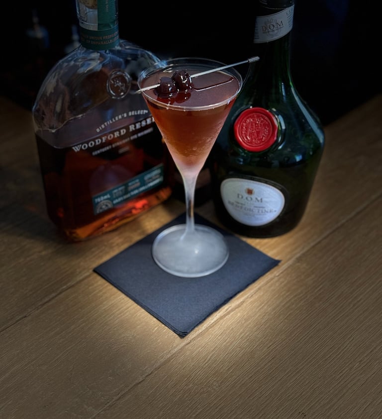 Stir 30-45 seconds until chilled. Strain into a chilled coupe. Garnish with an amarena cherry.