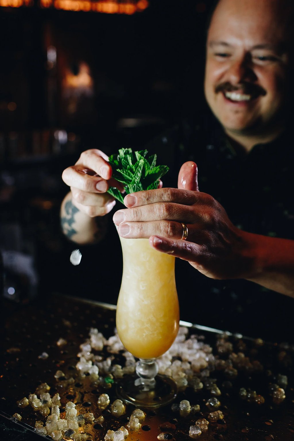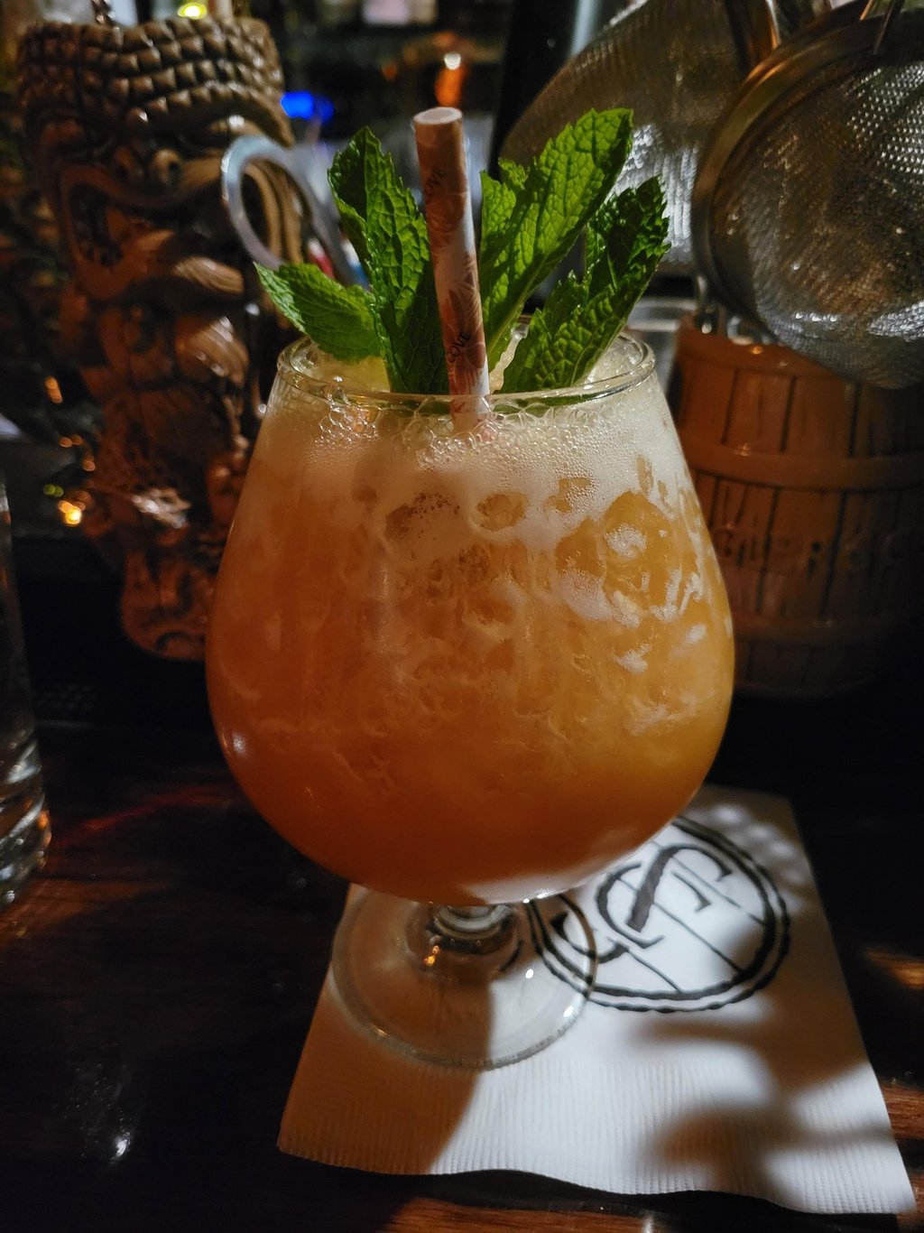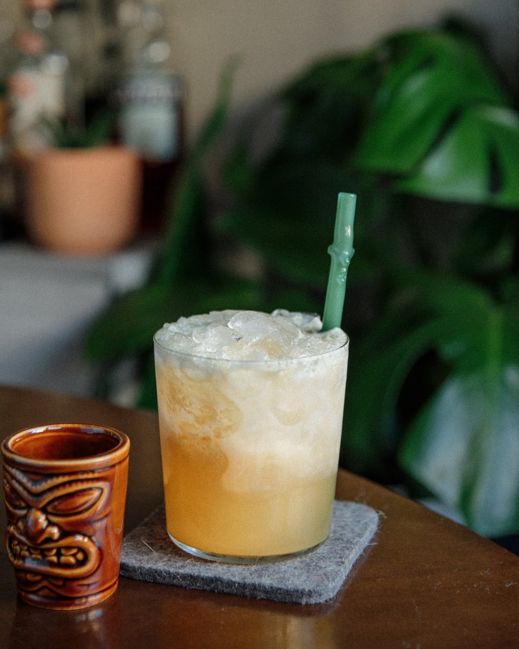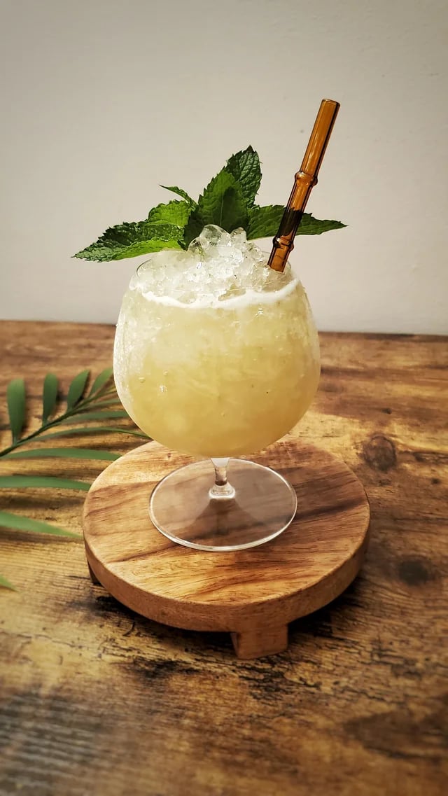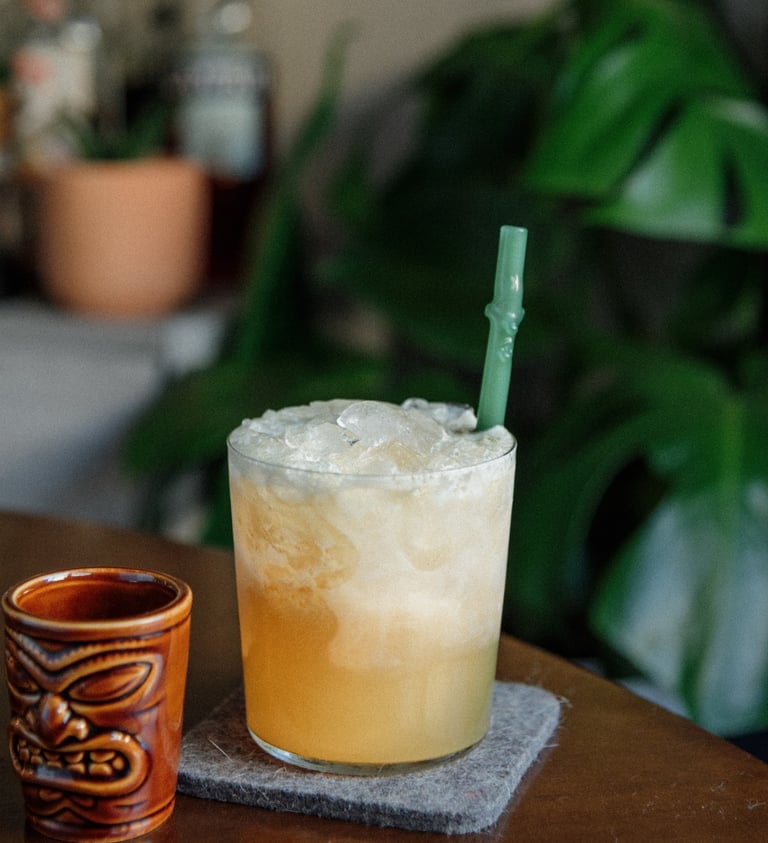 Whip Shake 10-15 seconds. Party pour into a rocks glass and fill with crushed ice. Garnish with a small shot of overproof Demerara rum (which you can shoot or add to the cocktail to make it drier).
