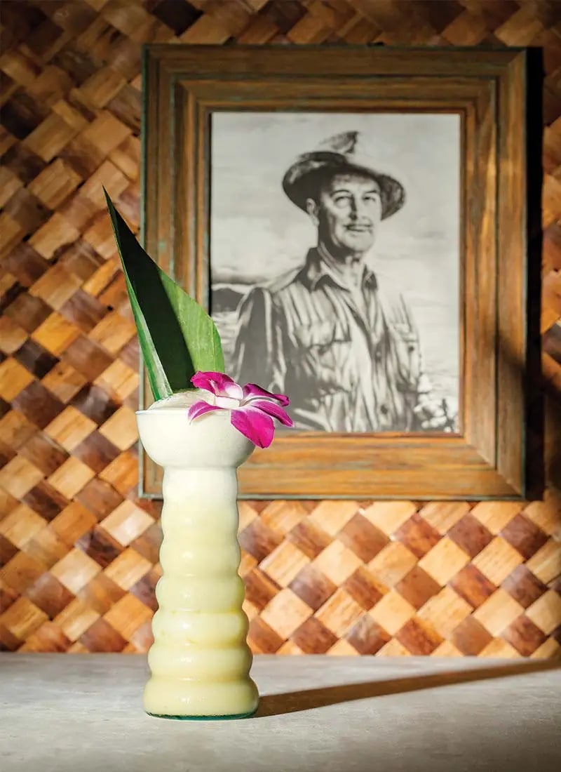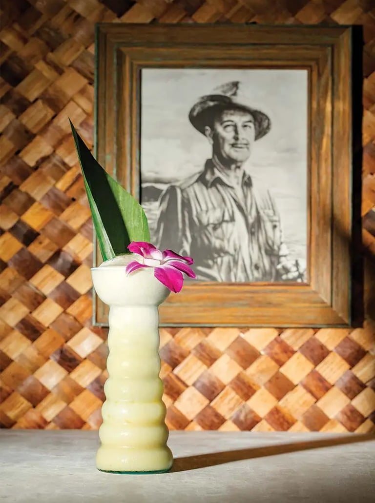 Flash blend 15-20 seconds. Party pour into a Pearl Diver or highball glass and fill with crushed ice. Garnish with pineapple fronds, orchid, or other tropical flourishes.