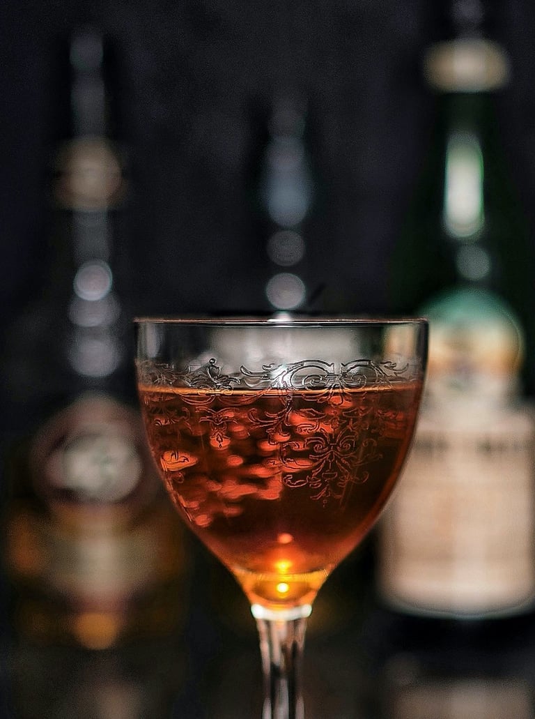 Stir 30-45 seconds. Strain into a chilled coupe. Garnish with freshly grated cardamom pods.