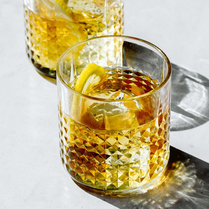 Shake 10-15 seconds. Strain over fresh ice into a rocks glass. Garnish with a spritz of peaty Scotch and candied ginger.