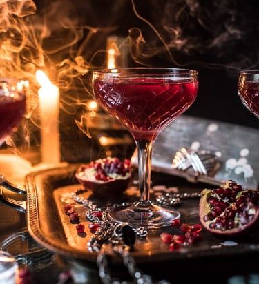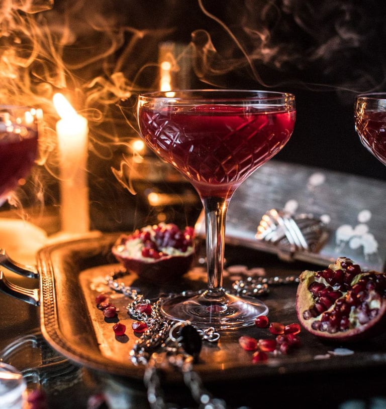 Add all ingredients to a shaker tin with ice. Shake 10-15 seconds with ice. Strain into a chilled coupe. Garnish with pomegranate arils.