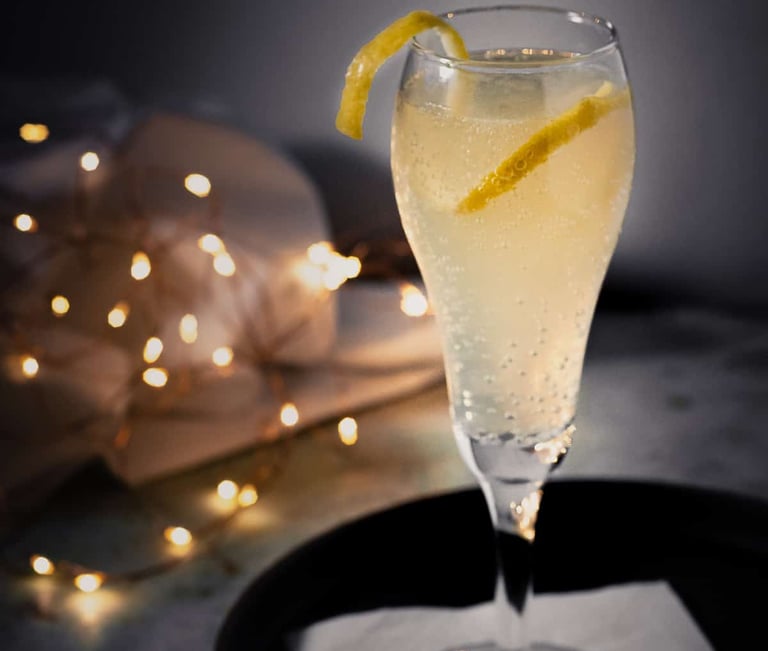 Shake 10-15 seconds and strain into a chilled coupe. Top with champagne. Garnish with a lemon peel.
